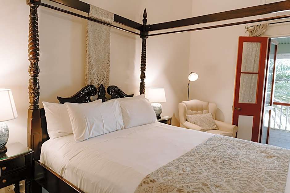 This renovated room features a Queen bed and an private bathroom with a separate shower and bath. There is a private veranda, a TV and DVD player, with 600 DVDs available from the front desk. There is a dressing room with a wardrobe and a dressing table, and pressed metal ceilings. Tea and coffee making facilities are provided. Please note guests under the age of 18 cannot be accommodated in ANY room type