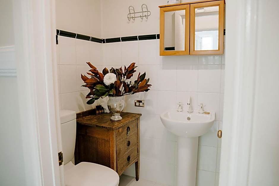 This renovated, first floor room features a private bathroom, located opposite the room, with a separate bath and shower, bathrobes and slippers. It also includes a ceiling fan, electric blankets and tea/coffee making facilities. There is a TV/DVD player. Guests have access to a DVD library with 600 DVDs.